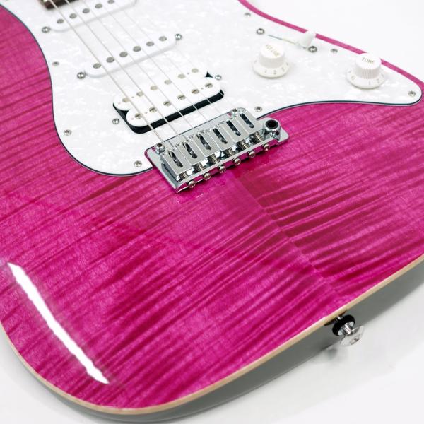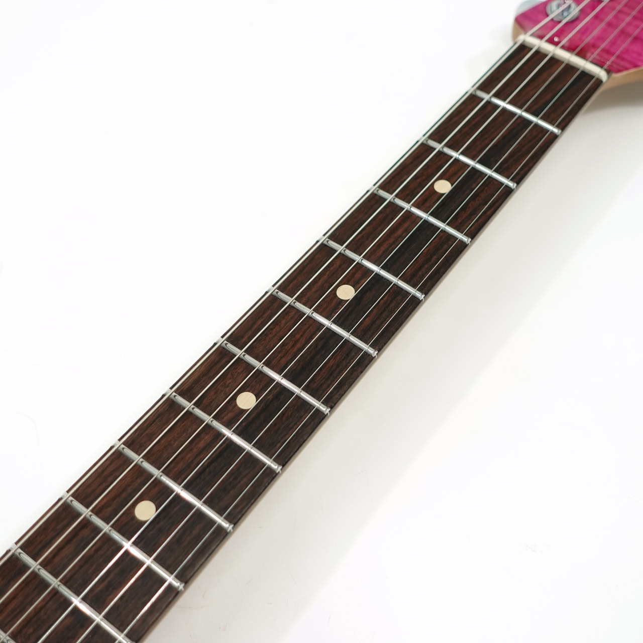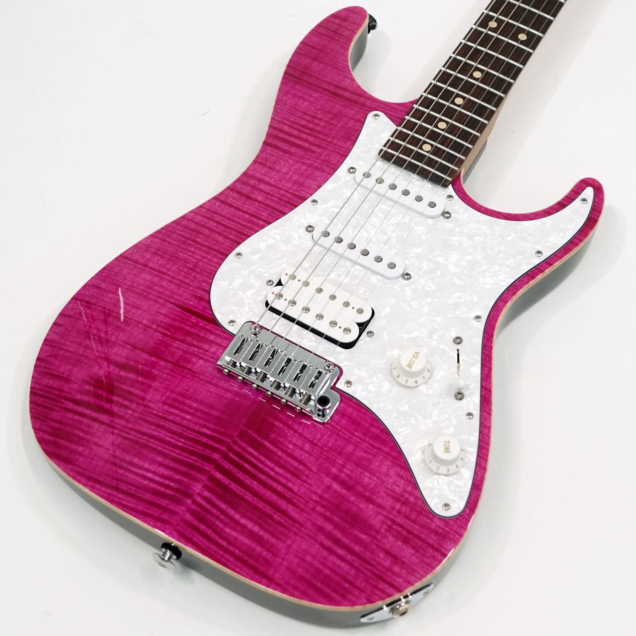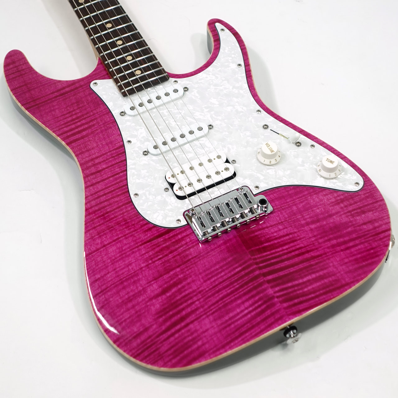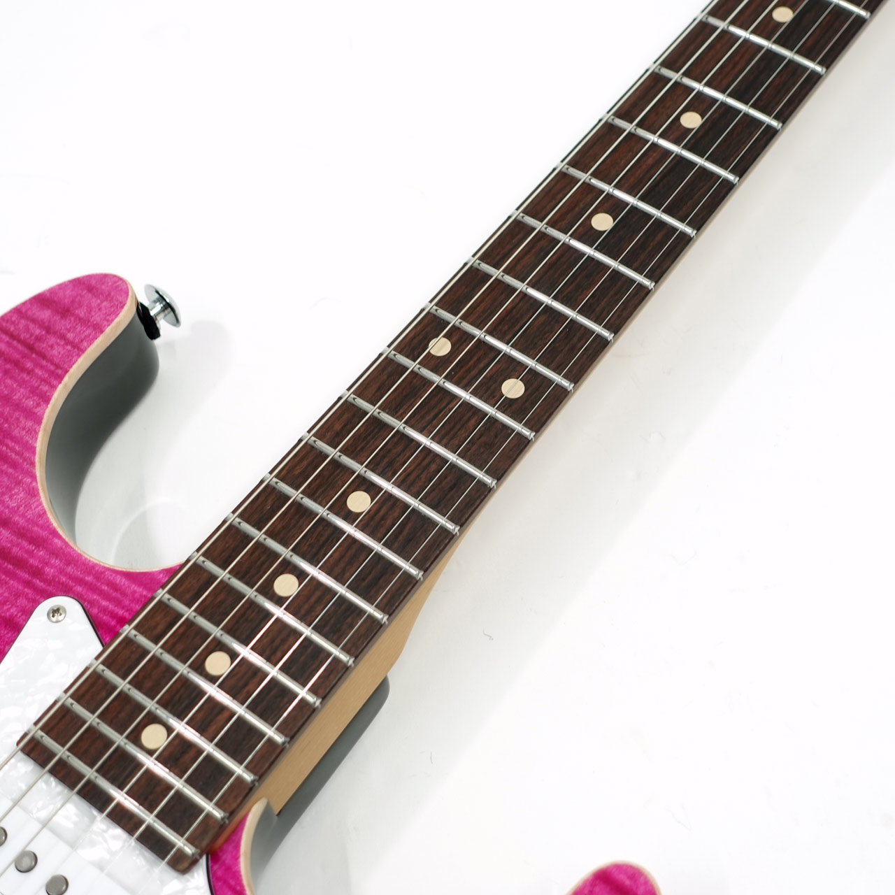 定番のフレイムメイプルトップ/バスウッドボディのコンビネーションに気温や湿度の変化に対する強い耐性、そして特有の鳴りも持ち合わせるローステッドメイプルネックを採用。指板にはパーフェローを採用したコンパウンドラジアス仕様。ヘッドストックにもフレイムメイプルトップをあしらったマッチングヘッド仕様です。