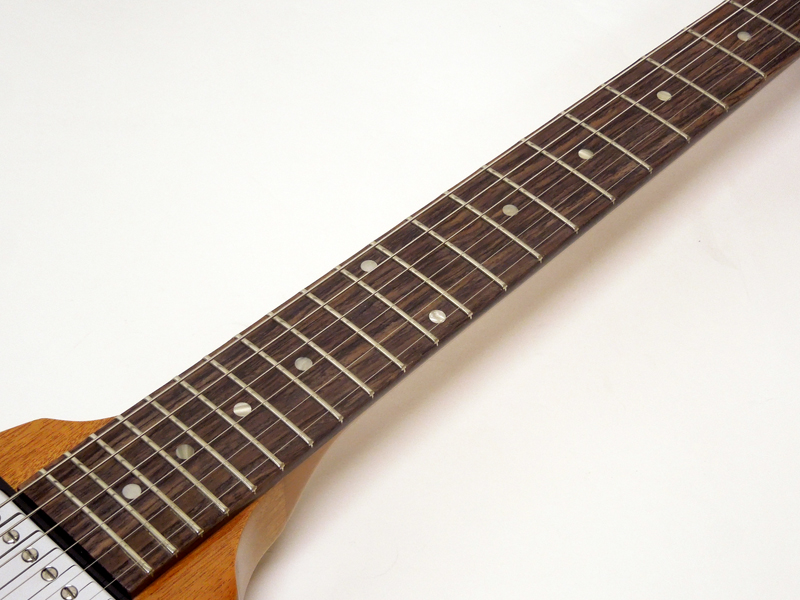 スリムテーパーのマホガニーネックは癖が無く長時間の演奏にも疲れを感じにくいグリップ感です。