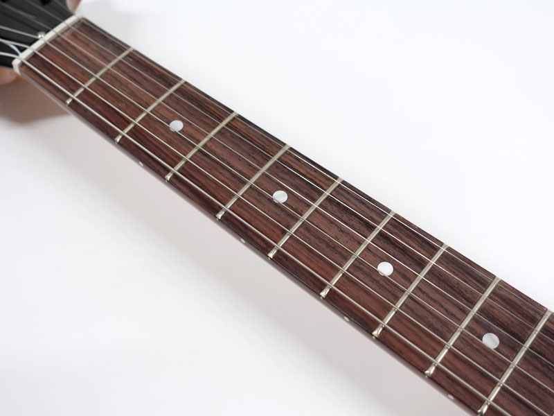 スリムテーパーのマホガニーネックは癖が無く長時間の演奏にも疲れを感じにくいグリップ感です。