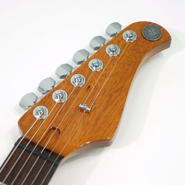 マホガニーボディ&ネックのFスタイルというと馴染みが薄いかと思いますが、材特性によるミドルレンジの分厚さを持ちながら抜けのいいキレのある高音域も出力し、マホガニーらしいピッキングの食いつき感はクセになる弾き心地です。