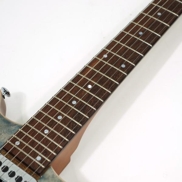 マホガニーネック、マダガスカルローズウッド指板、24フレットのコンパウンドラジアス指板。