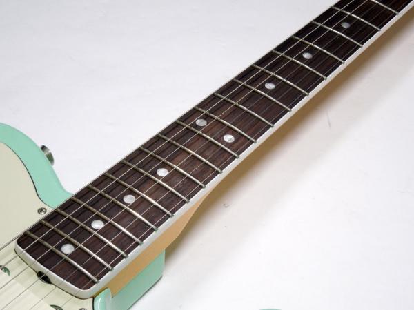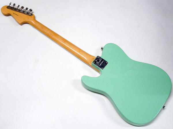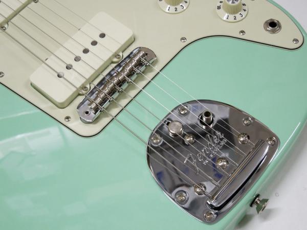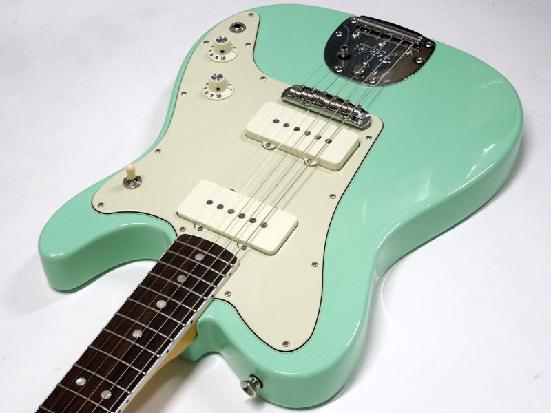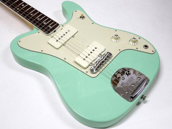 テレキャスターとジャズマスターが融合した存在感のあるルックスに爽やかなサーフグリーンのラッカーフィニッシュで仕上げた個性的な一本。アッシュボディ、ローズウッド指板、Modern "Deep C"のメイプルネックや9.5インチラジアス指板、ナロートールフレットなど現代的な弾きやすい演奏性を持ち、AMERICAN PROFESSIONAL JAZZMASTERのトレモロアームブリッジ、 AMERICAN VINTAGEシリーズのチューニングペグなど、フェンダーUSA製ギターの技術が随所に採用されています。