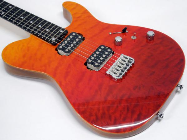 本機は限定モデルとして製作され、マホガニーボディに鮮やかなキルトメイプルトップ、マホガニーボディを採用。ボディトップのフィニッシュは杢目を活かしたグラデーションのレッドフェイドカラーで特別感の高い一本です。
