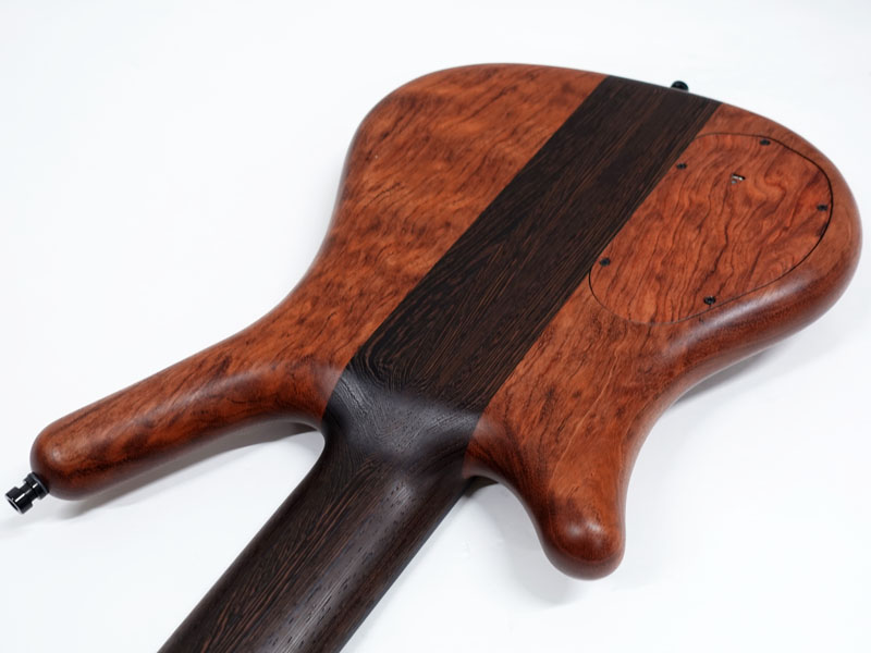 ブビンガ ポメル材のボディとウェンジネック、エボニー指板から奏でられるサウンドはボルトオンモデルとはまた違う艶のあるキャラクターを持っています。