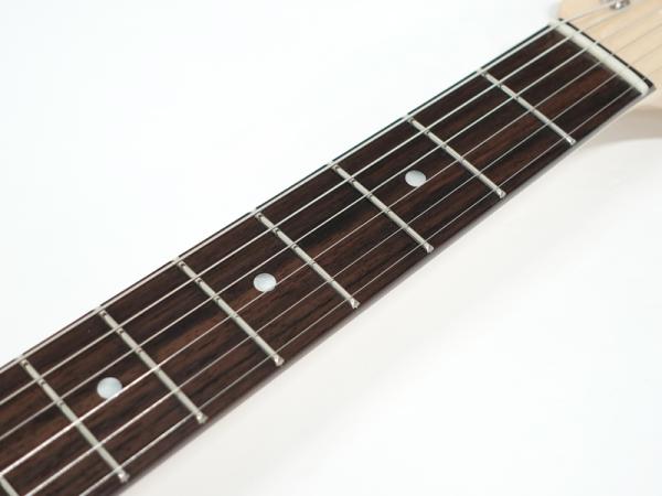 アルダーボディ、メイプルネック&ローズウッド指板、ヴィンテージスタイルながらシェクターらしさを詰め込んだ一本。鍔出しの22フレット仕様、ネックジョイント部のホイールナットでトラスロッドの調整も簡単です。