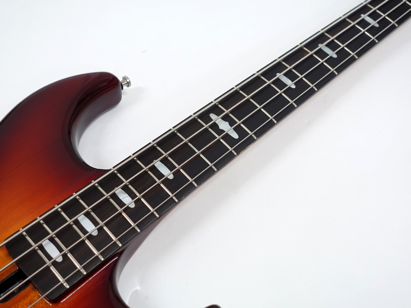 メイプルとマホガニーの5Pラミネイトスルーネックにエボニー指板、アルダーボディ。ロングスケールの21フレット、オリジナルダイキャストブリッジやチューナーを装備します。