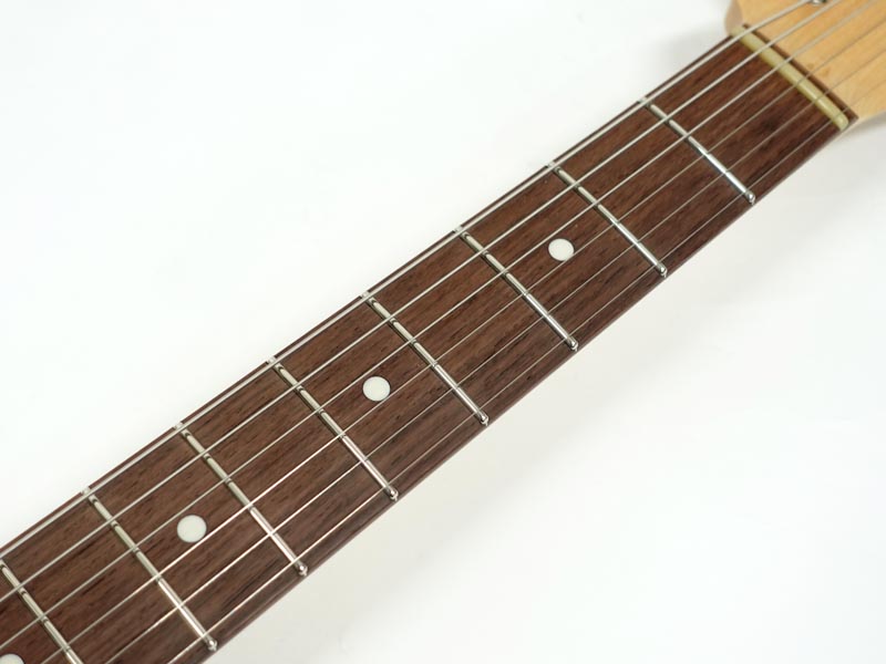 本器は60年代初期仕様のテレキャスターをイメージしアルダーボディとローズウッド指板のコンビネーション仕上げたモデル。指板には今や希少となっているマダガスカルローズウッドをスラブ貼りで採用。