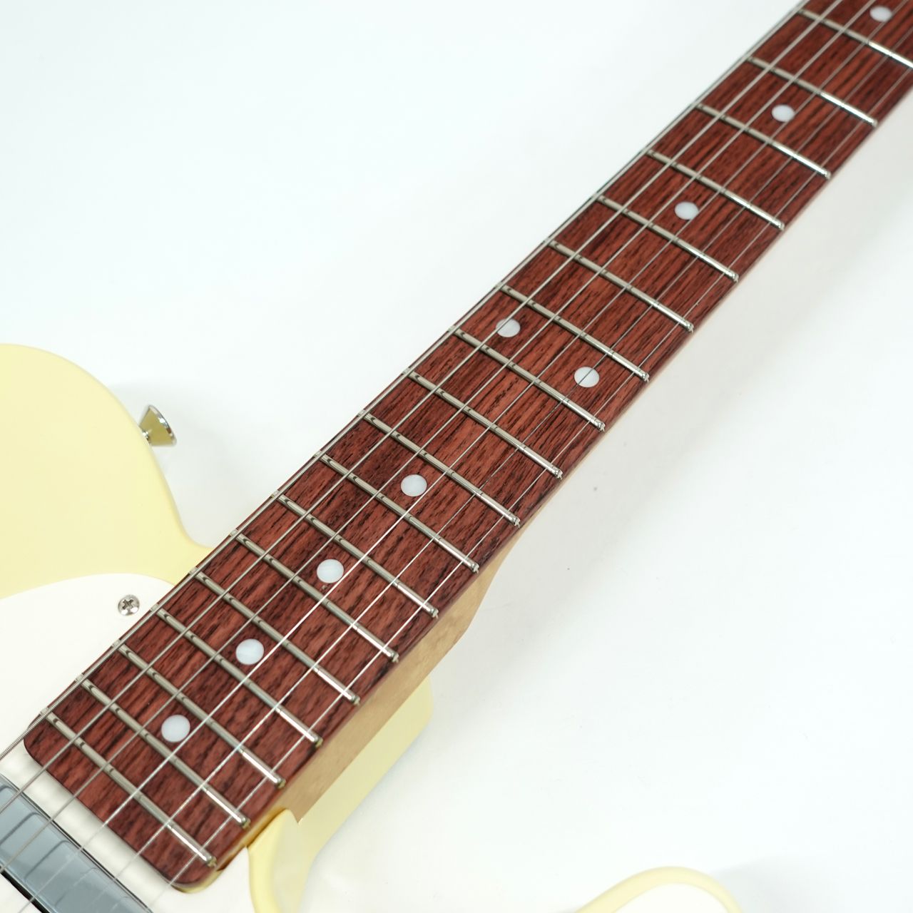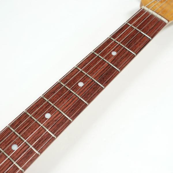 選定された上質なアッシュボディにブロンドフィニッシュ。指板には希少なホンジュラスローズウッドを採用し、茶褐色の濃淡が美しい杢目を持ちます。