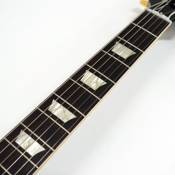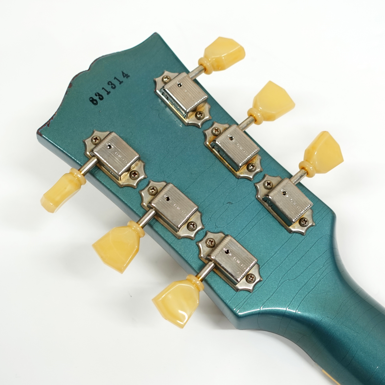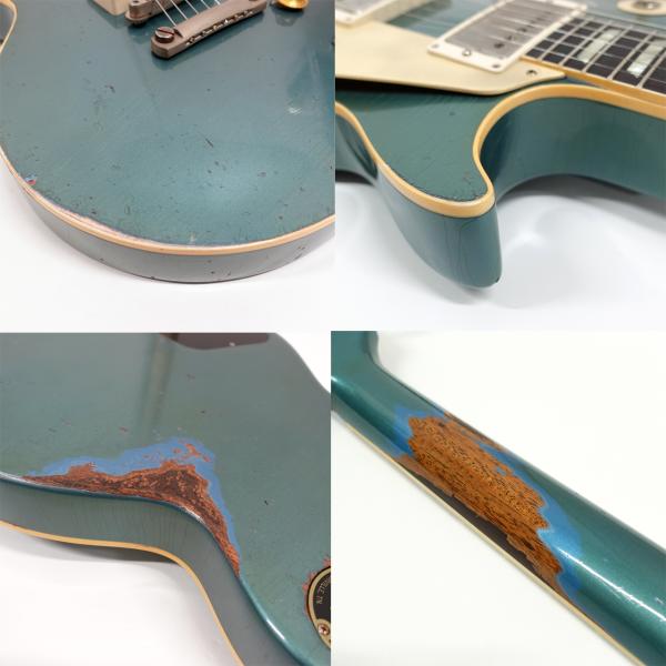 特筆すべきは「Antique Pelham Blue All Over」フィニッシュでボディトップ、バック、ネックバックまで塗装され、マーフィーラボのヘビーレリックで塗装の褪色やウェザーチェック、リアルなエイジド加工がなされています。