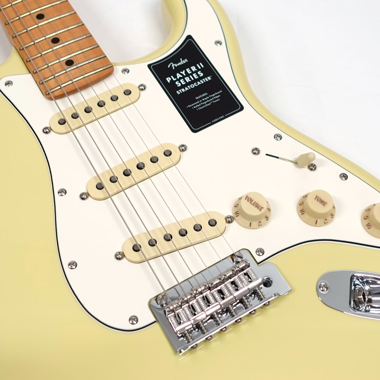 Player II Stratocasterは、時代を超越したフェンダーの魅力を放ちながらも、その中身は現代プレイヤー向けにデザインされています。Modern "C"シェイプのネックバックにはシルキーなサテンウレタンフィニッシュが施されており、丁寧にロールオフされた指板エッジと22本のミディアムジャンボフレットを採用した9.5インチラジアスのメイプル指板が、ネック全長にわたり快適なプレイアビリティを提供します。