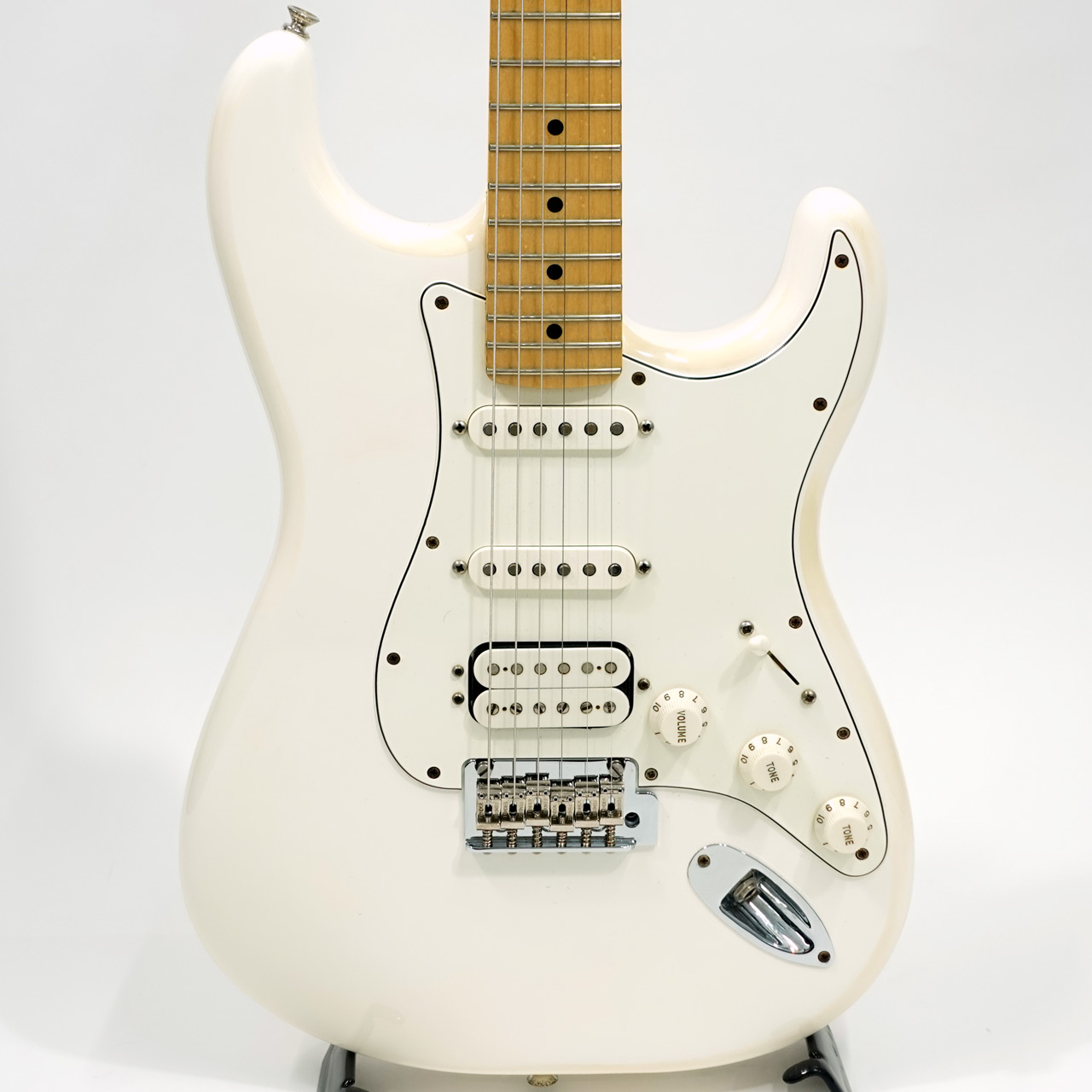 定番のアルダーボディ、メイプルネック、メイプル指板を採用。ロックなサウンドにも対応するHSSピックアップレイアウト。