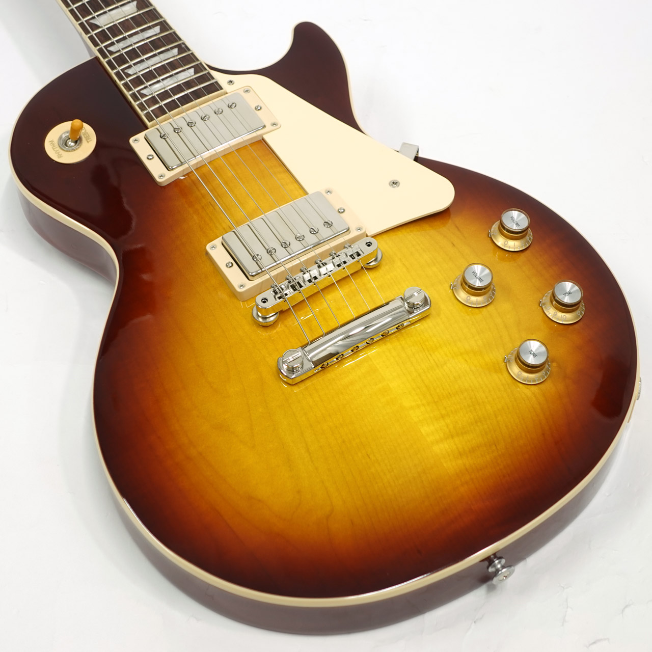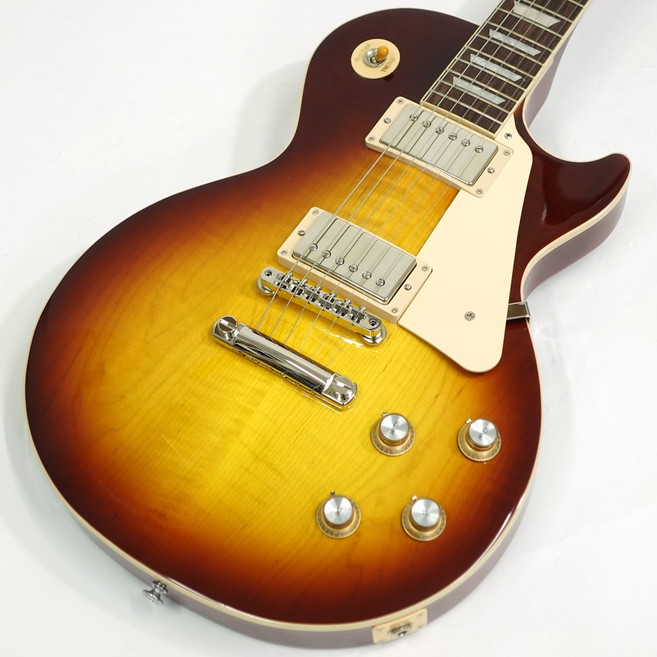 正統派のレスポールスタンダードが復刻。ウエイトリリーフを施さず従来のメイプルトップ&マホガニーバックのボディ。重量感のあるサウンドは破壊力を持ち見事な音圧が魅力。