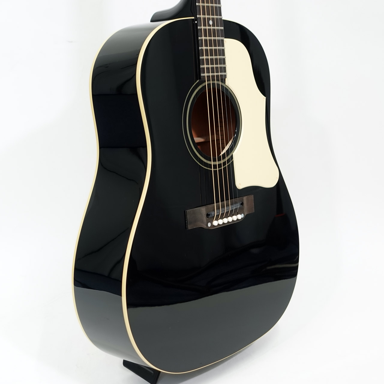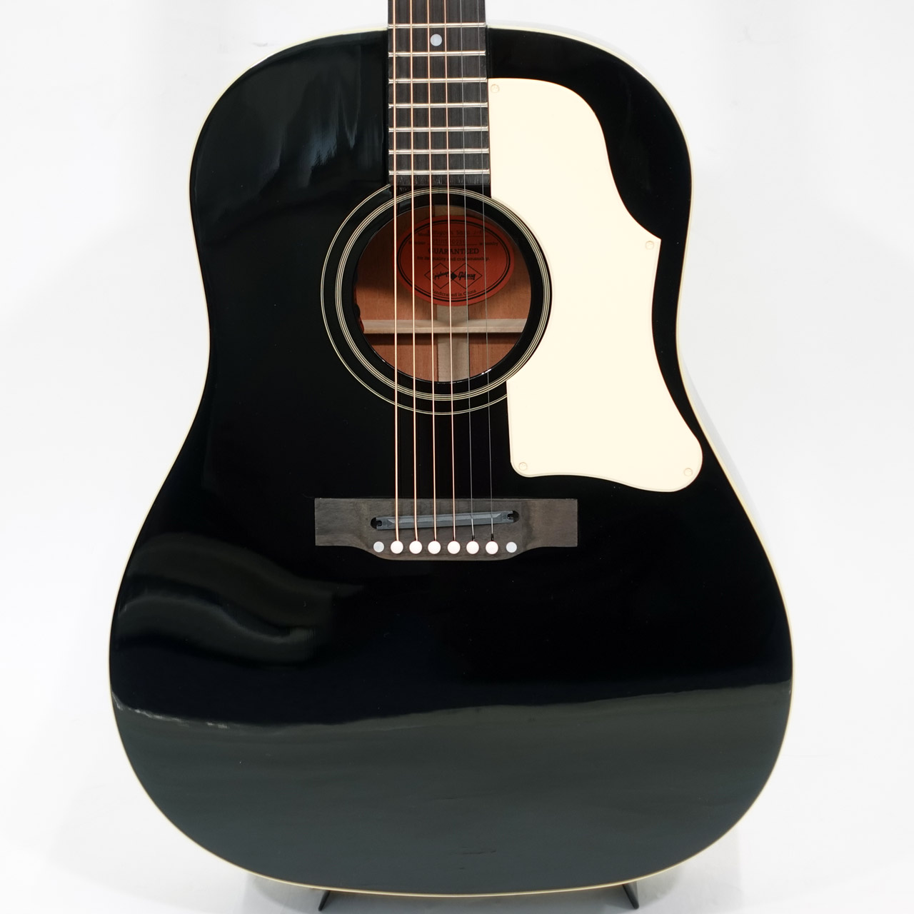 エボニー仕上げのボディには、クリーム色の60年代スタイル・ピックガードと、ベリーダウン仕様のローズウッド・ブリッジに黒いGraph Tech®サドルが装着され、精悍な印象を醸し出しています。ピックアップはL.R.Baggs™ Element Bronzeが搭載されており、ステージやスタジオでのプラグイン時にハイクオリティなパフォーマンスを約束します。ボリュームとトーンコントロールはサウンドホール脇に目立たないように配置され、容易に操作可能でありながら、聴衆からはほぼ見えないよう装着されています。Kazuyoshi Saito J-45は、レッドラインをモチーフにしたハードシェルケースに収納され、あらゆるライブ公演やツアーへと即座に持ちだすことができます。