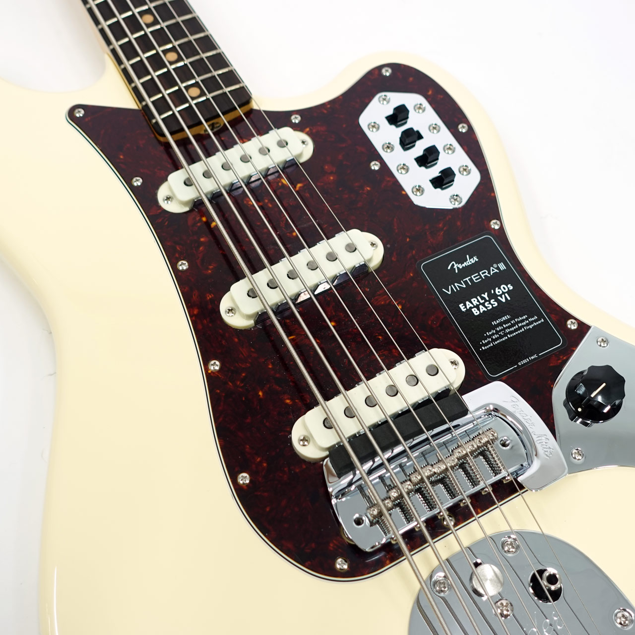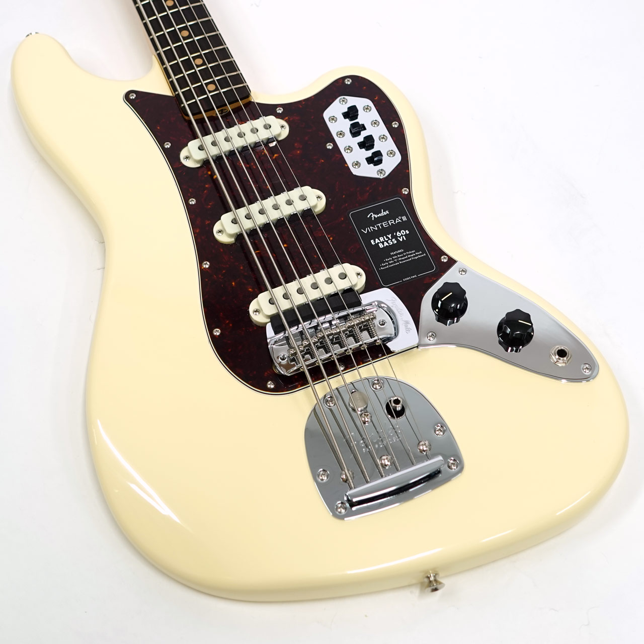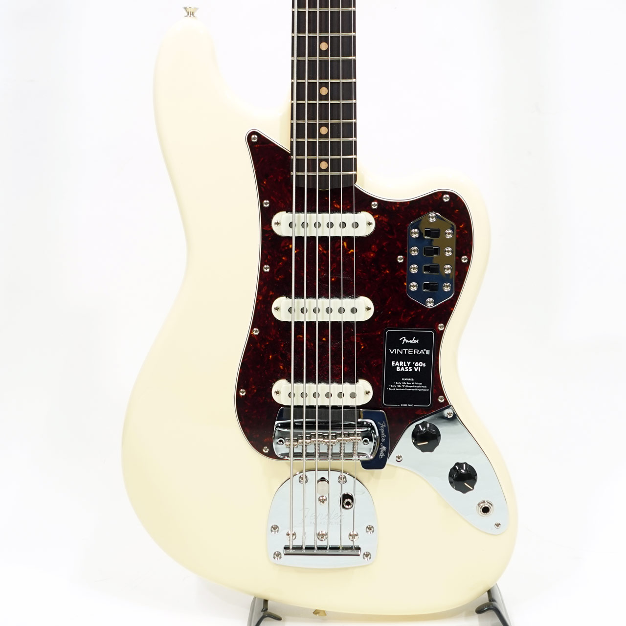 その他、表現力豊かなヴィブラートを可能にするヴィンテージスタイルのフローティングトレモロ、各ピックアップのOn/Offスイッチ、ヴィンテージスタイルBass VIミュート、そしてチューニング安定性を高めるヴィンテージスタイルチューニングマシンを備えています。