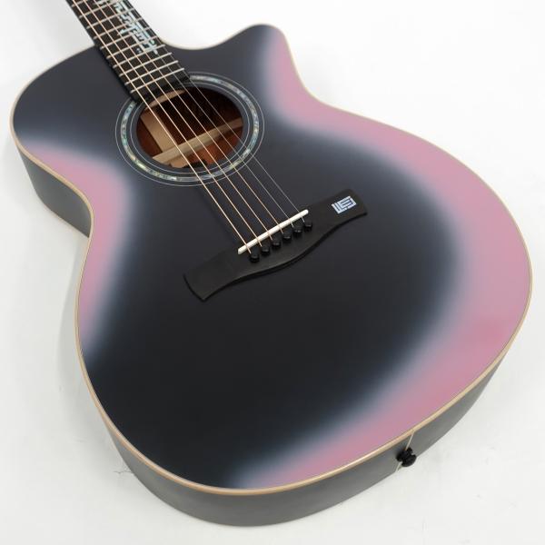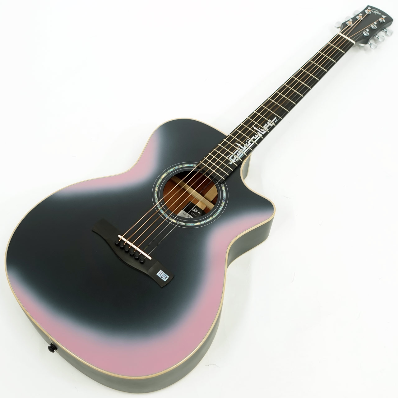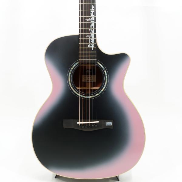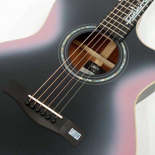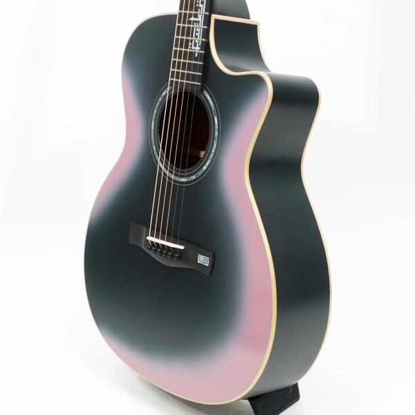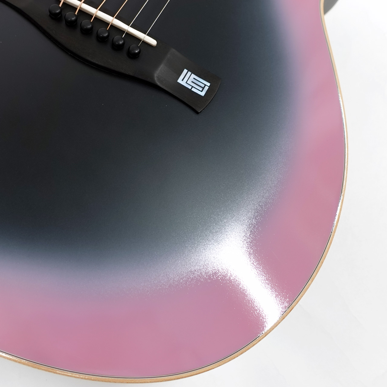 ボディのブラックはマット加⼯で統⼀され、それを囲うように曲線に沿ってピンクのグラデーションが溶け込むカラーリング。また、ピンク部分のみにツヤ出し加⼯が施されており、これがマットブラックと相反するコントラストを⽣み出し、プレイヤーの個性をさらに引き⽴てる唯⼀無⼆なギターへと昇華させます。