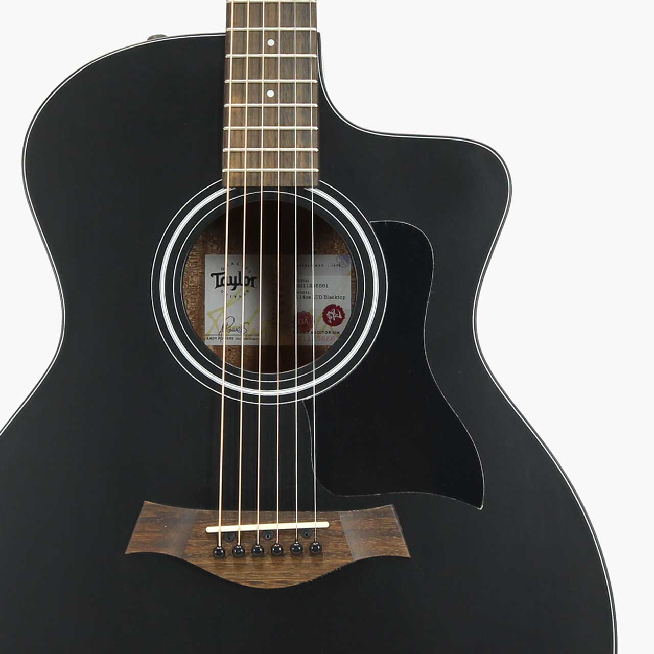 こちらは国内限定100本でリリースされたサテンフィニッシュのブラックカラーにトップ板が着色されたリミテッドシリーズ。非常に好ルックスでTaylorの100番台の限定仕様としては珍しいスペックのモデルとなります。