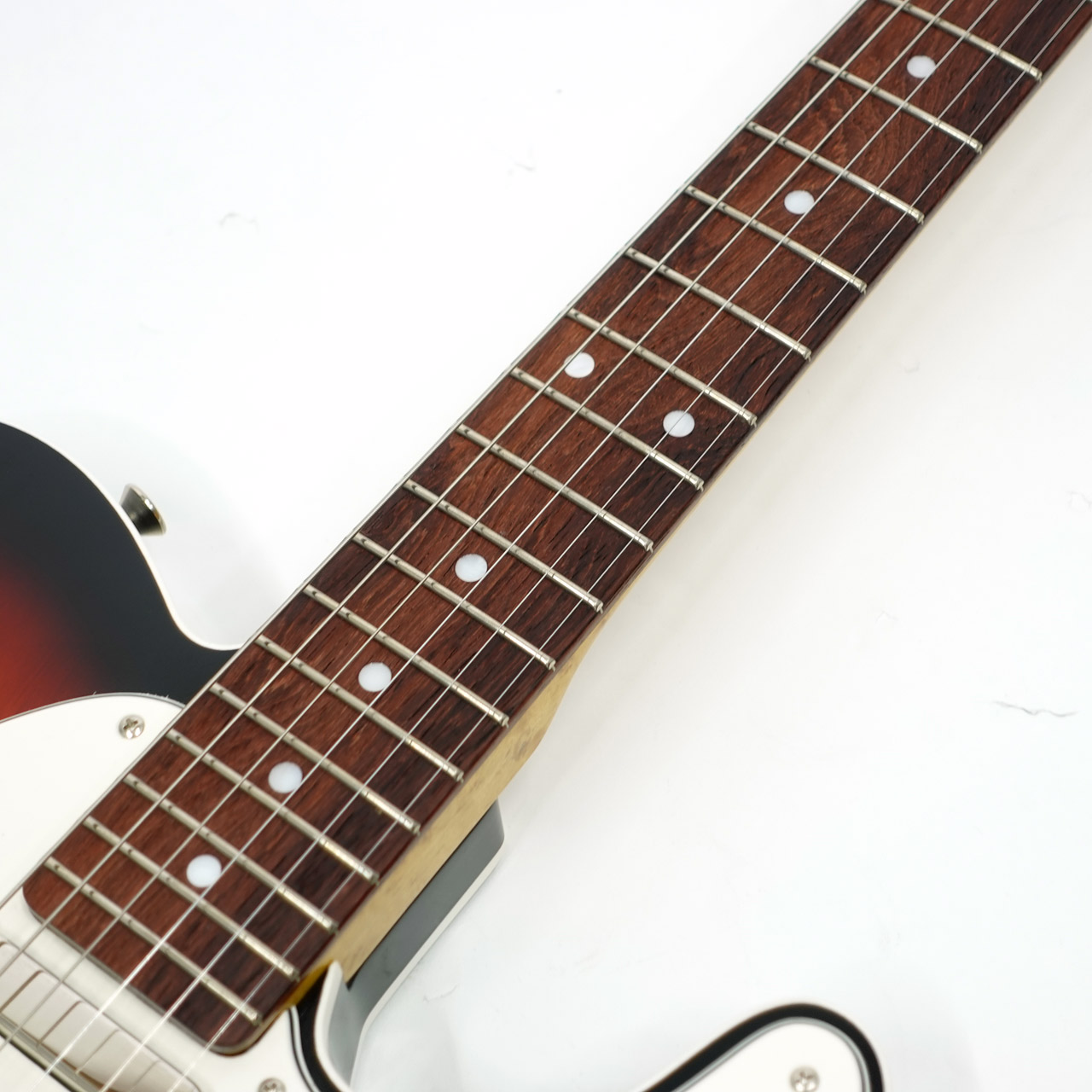 選定された上質なアルダーボディにサンバーストフィニッシュ。指板には希少なホンジュラスローズウッドを採用し、茶褐色の濃淡が美しい杢目を持ちます。