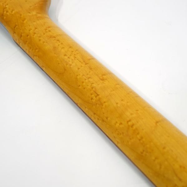 本器はバースアイメイプルネックを採用し、いかにも硬質そうな鳥眼杢が出たネックが目を惹きます。