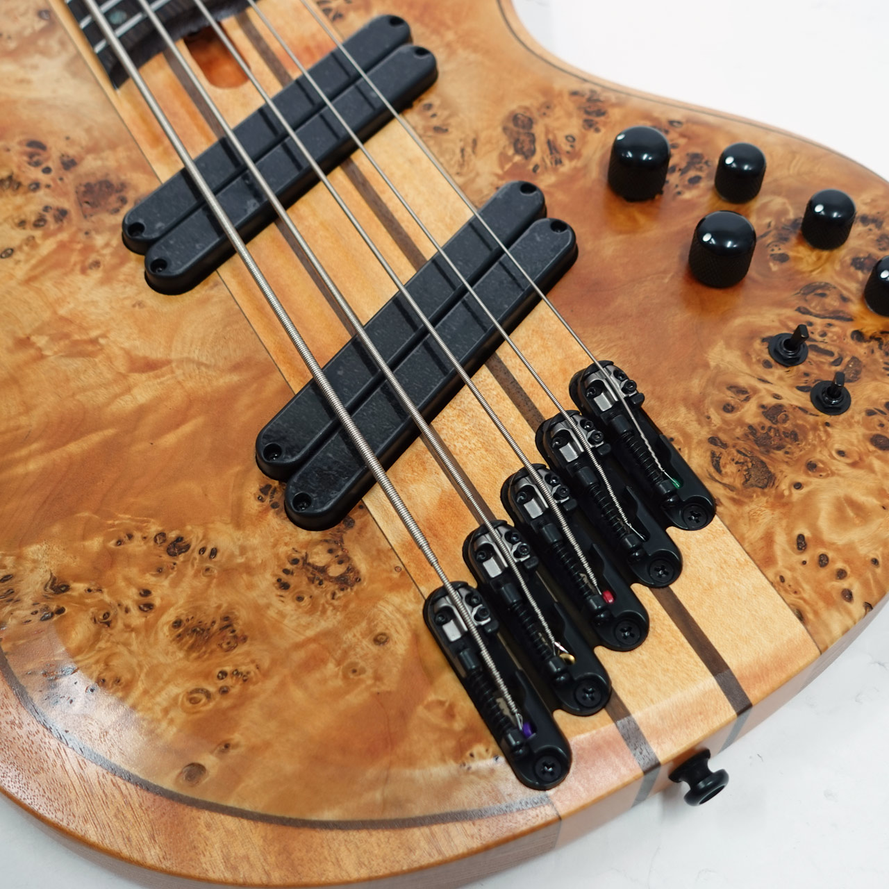 スルーネック構造がもたらすロング・サスティーンと豊かなレゾナンス、そして全フレット域に渡るネック・バックのシームレスな演奏感は、BTBベースの最大の特長と言えるでしょう。