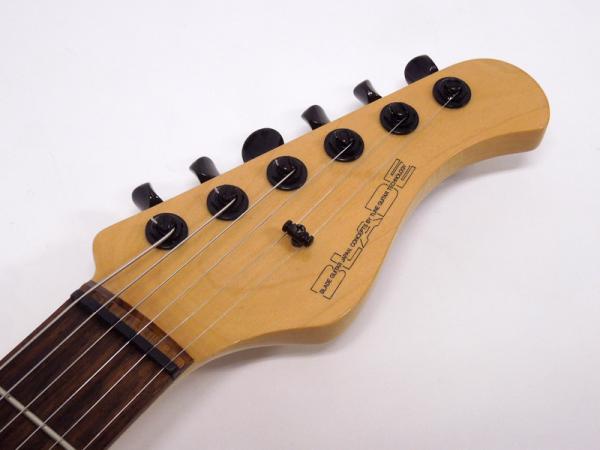 本器はアルダーボディ、メイプルネック、ロースウッド指板、TUNEロゴ入りGOTOH製ロックペグ、GOTOH製ウィルキンソンブリッジ、22Fのロングスケール仕様です。