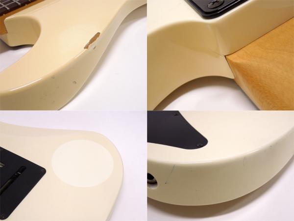 ボディトップ6弦側のエッジに塗装剥がれ、ブリッジの下部に打痕、塗装焼けがあります。