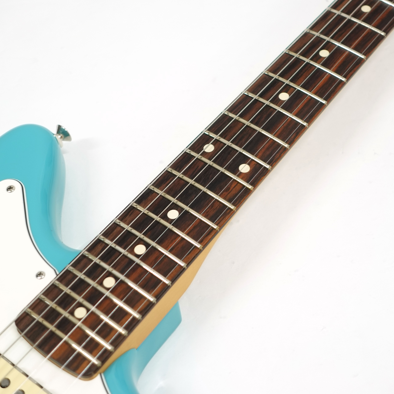 Player II Jaguarは、時代を超越したフェンダーの魅力を放ちながらも、その中身は現代プレイヤー向けにデザインされています。Modern "C"シェイプのネックバックにはシルキーなサテンウレタンフィニッシュが施されており、丁寧にロールオフされた指板エッジとミディアムジャンボフレットを採用した9.5インチラジアスのスラブローズウッド指板が、ネック全長にわたり快適なプレイアビリティを提供します。