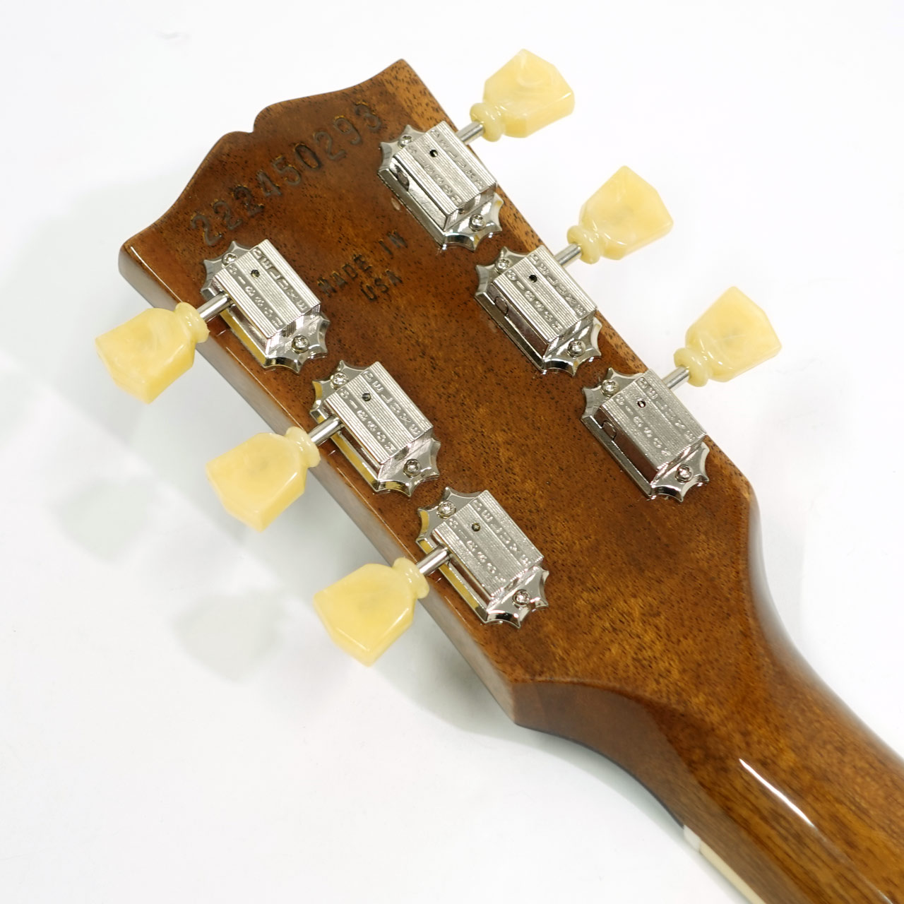 往年のクラシックデザインを踏襲したLes Paul Standard。世界限定500本としてリリースされた本機はオープンタイプのダブルクラシックホワイトのボビンのピックアップが2基搭載した1本。更に塗装にはニトロセルロース・ラッカー・フィニッシュのヴィンテージ・カラー・バリエーションを採用し年月を経て自然に生じる経年変化の風合いを再現しています。