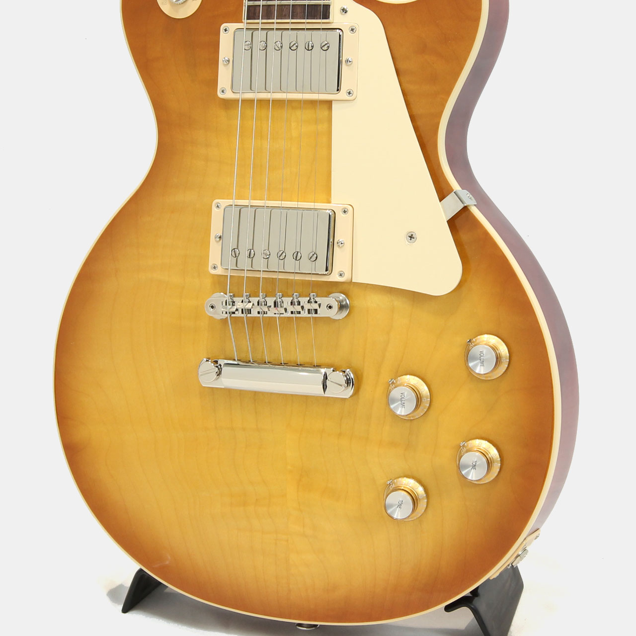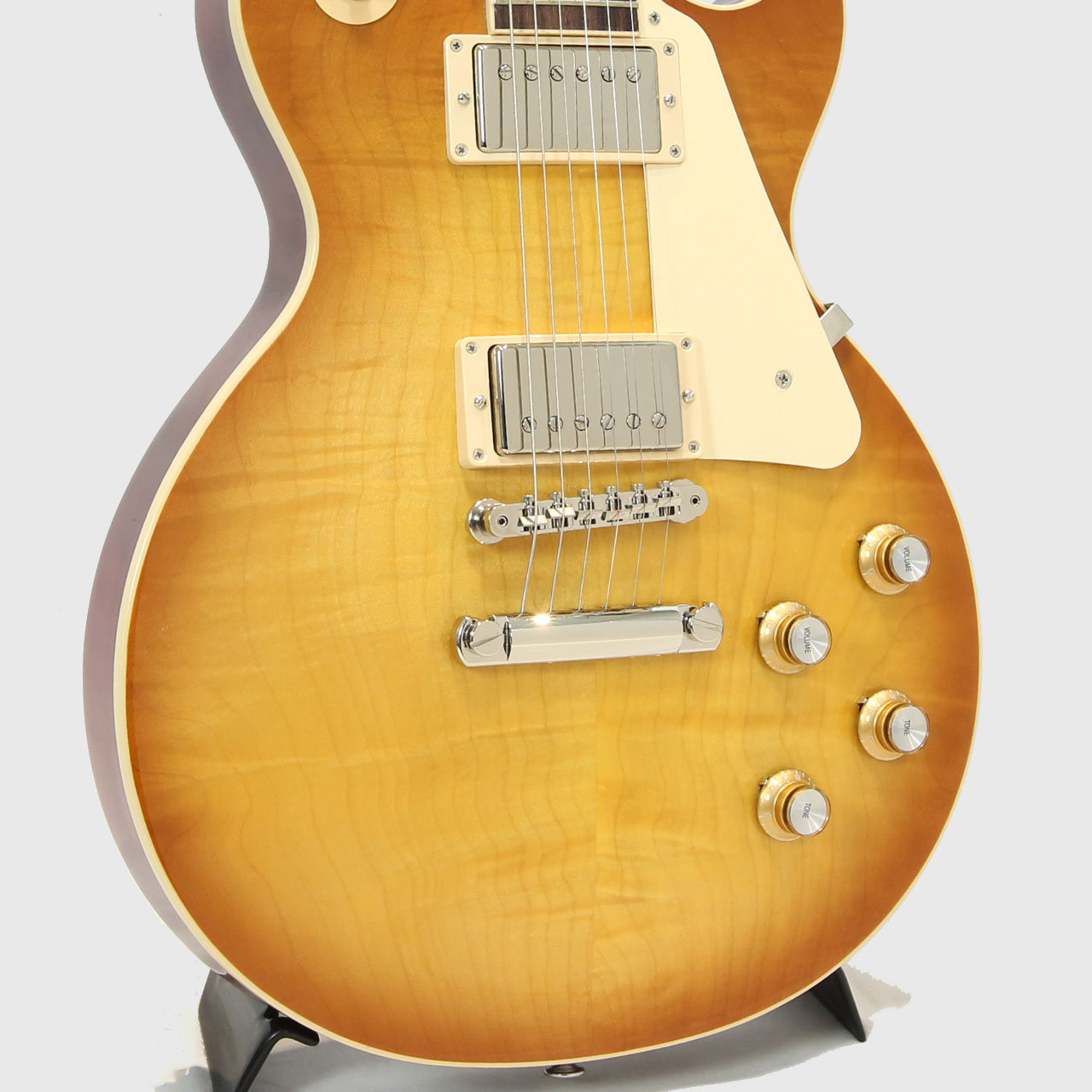 やや薄めに仕上げられたネックシェイプ、パワーを持たせたピックアップで現代志向寄りに作られたLes Paul Standard '60s。外周のフェイドを控えめに仕上げたアイスティーカラーは当店でも人気のカラーです。