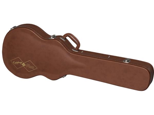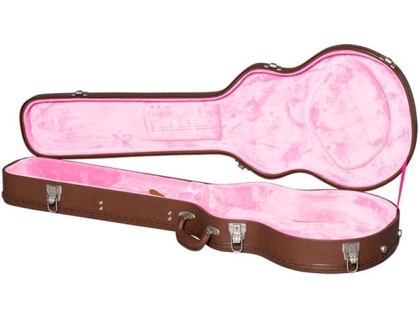 ケースはエピフォン、ギブソンカスタムショップのロゴとピンク内装、ブラウン外張りヴィンテージ・スタイルのハードシェルケースが付属です。