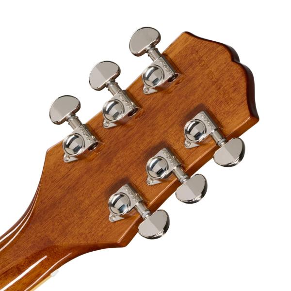 エピフォンとレス・ポール氏(偉大なギタリスト~ミュージシャンであり発明家!!)の長い友情関係は1940年にまで遡ります。若きレス・ポール氏は、当時マンハッタンにあったエピフォン工房で夜な夜な試作を重ね、世界初のソリッドボディ・エレクトリックギターのひとつと言われる"the Log"を作り上げました。そして"the Log”での成果が後々、今日も多くのギタープレイヤーにとって最上のエレクトリックギターとして垂涎の的である、レスポール・モデルの開発・誕生へと反映されていったのです。 “Inspired by Gibson”コレクションから新たにリリースされたエピフォン・レスポール・スタンダード 60sは、60年代初頭のレスポールを想起させるサウンド・ルックス・フィーリングを現代に蘇らせています。 ボディ・トップにはメイプルが貼られ、杢目を際立たせるトランスルーセント系カラーにはAAA グレードのフレイム・メイプル化粧板がトップにあしらわれ、往年の”フレイム・トップ”の外観を醸し出しています。ローレル指板上ではパーロイド素材のディッシュ・インレイが施され、ミディアム・ジャンボ・フレットを採用。60s SlimTaperプロファイルのネックシェイプはスムーズな演奏性に寄与し、ヘッド部に装着されたGrover RotomaticチューナーとGraph Techナットは安定したチューニングをもたらします。エピフォンの定評ある2基のProbuckerピックアップを採用し、ネック・ポジションにはProbucker 2を、ブリッジ・ポジションには出力が高めに調整されたProbucker 3を搭載。それぞれのピックアップは一対となるCTSボリューム&トーン・コントロールに接続されています。