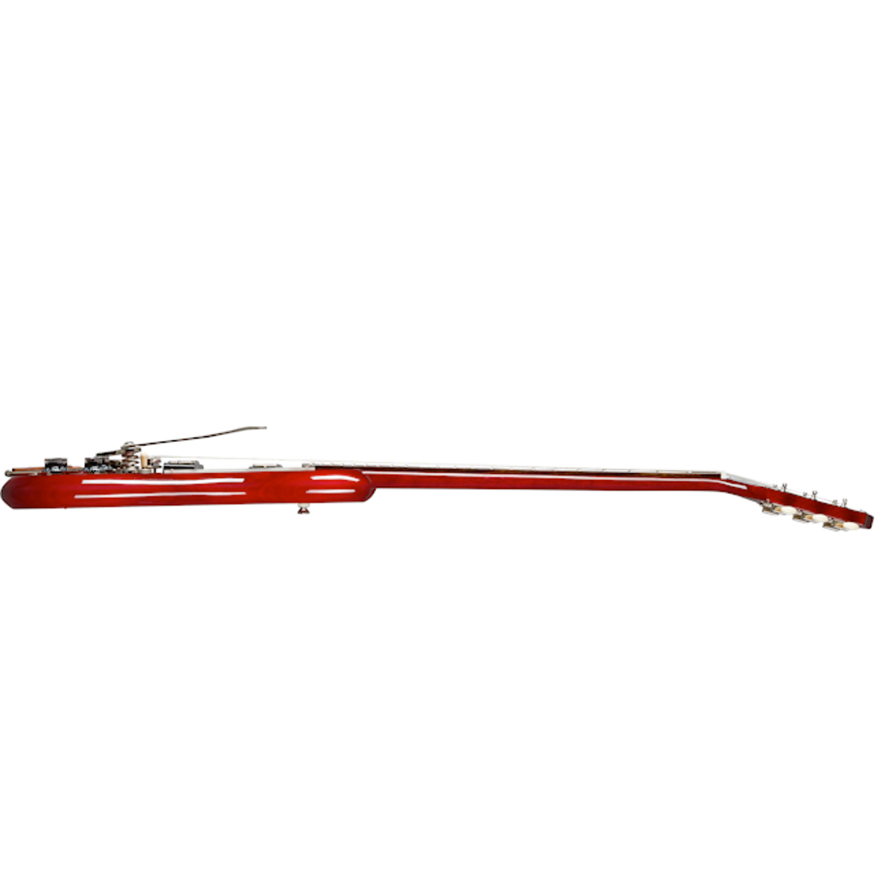 軽量なボディ、ネックにミニハムバッカー、エピフォンロゴの入ったトレモロとちょっとマニアックなスペックを採用しています。大きめのピックガード、ポジションマーク、カバードのヘッドロゴなど往年のルックスを継承、今でもインパクト有ります!よね。