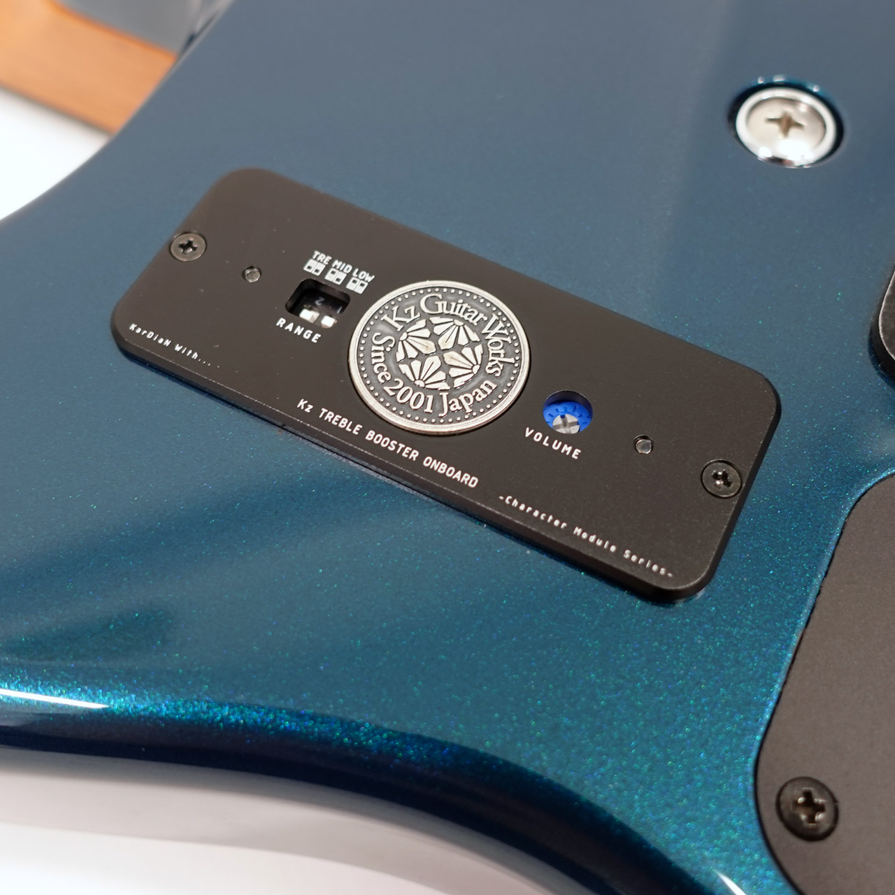 Kzオリジナルピックアップを採用した2ハムレイアウト。さらにKardian とコラボしたオンボードキャラクターモジュール「Kz TREBLE BOOSTER ONBOARD」を搭載、S-1スイッチ一つでブースターをオン/オフできる機構を搭載しています。