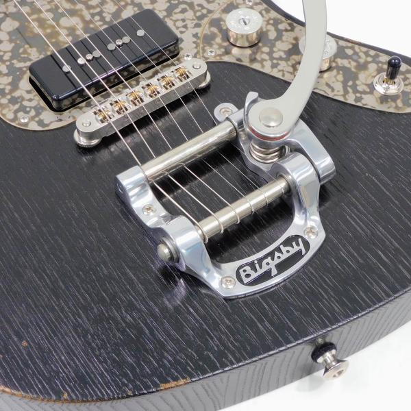 その他ノブにはイタリアの銃弾メーカーフィオッキ社にオーダーしている"Shotgun Shell Knob"、ピックガードやジョイントプレートにはブラスを採用。
