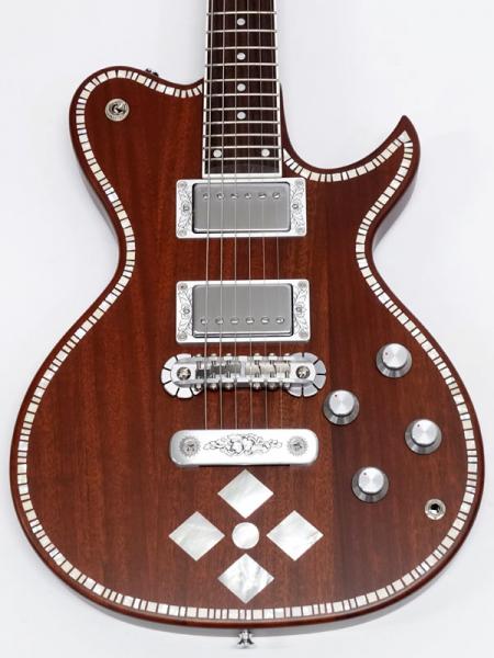 ゼマイティスの伝統に新たな発想を取り入れたゼマイティス・アンタナスより、ゼマイティス独自のダブル・カッタウェイの“デュオカット”ボディに白蝶貝のダイヤ・インレイをボディ・トップに施したA24SU DC NATURAL PEARL DIAMOND。