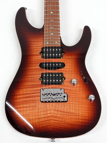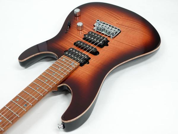 Ibanezの看板モデルといっても過言ではない「AZ」シリーズより、往年のディマジオピックアップのH-S-Hレイアウトにフレイムメイプルトップのルックスが登場!