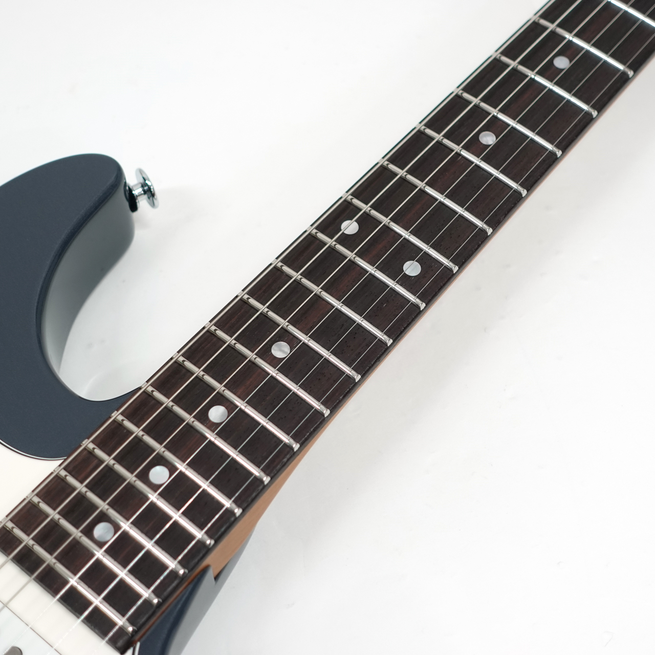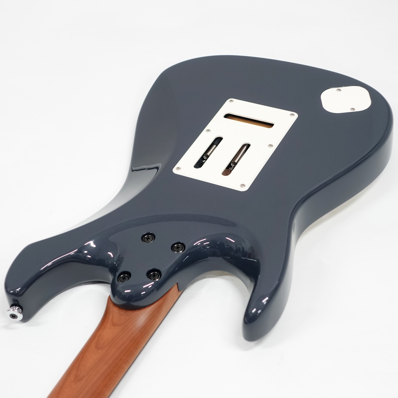オリジナルのボディ形状を採用したアルダーボディ、エステック処理を施したローステッドメイプルネックにローズウッド指板、ネック形状は従来のネックより少し厚く設計、弾きやすいオイルフィニッシュ仕上げにしています。Ibanezの薄ネックが苦手な方にも手に馴染むような適度な厚さです。指板はコンパウンドラジアスを採用しスムーズな演奏性を提供します。