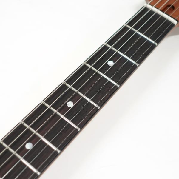 GOTOH製マグナムロックペグ、シンクロトレモロ、ステンレスフレット、ボディのコンターやネックジョイント部の球面仕上げ、蓄光素材のサイドポジションマークなど現代的な演奏性の高さを求めてひと手間ふた手間かけた拘りの感じられる一本。