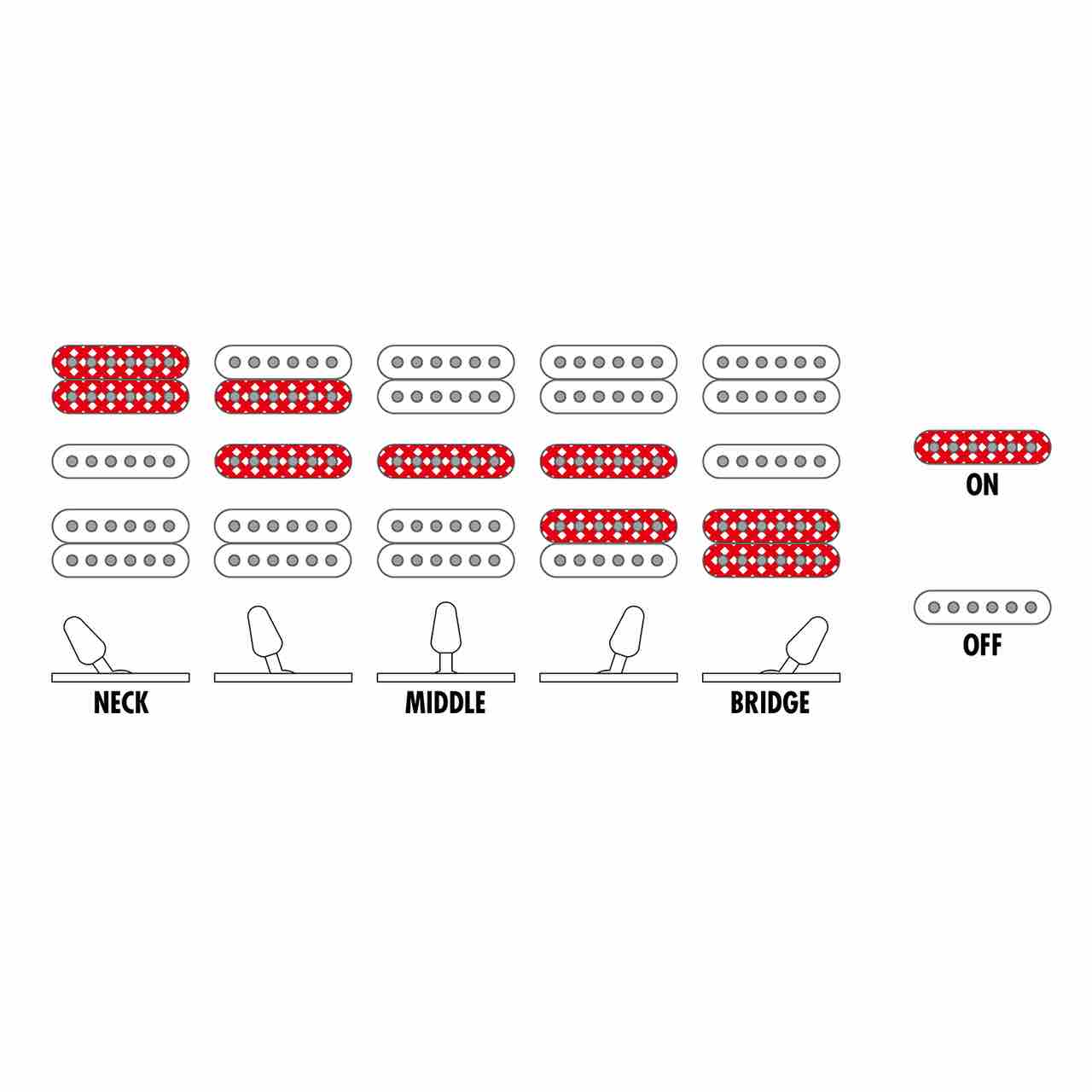 ピックアップにはラウド・ミュージック全盛となった90年代後半に多く採用されたV7/V8ピックアップを採用しています。パワフルな中域、高域の抜けに配慮したフロント(V7)、低域のパワーに配慮したリア(V8)が特徴です。シングル・ピックアップはV7/V8との組み合わせを前提に設計されたS1を搭載しています。