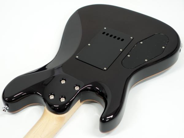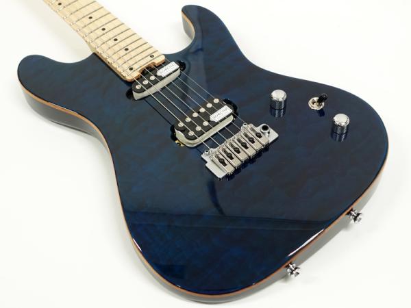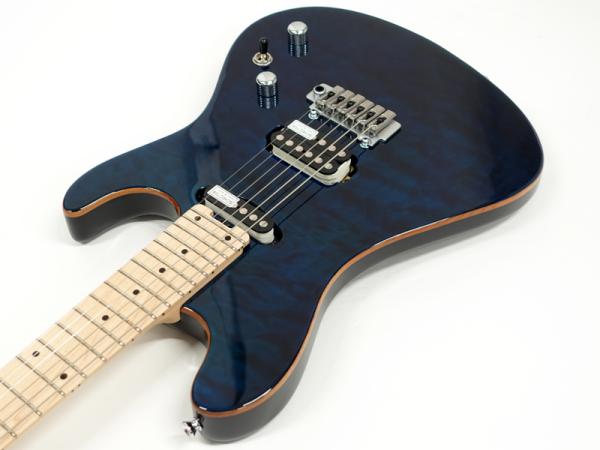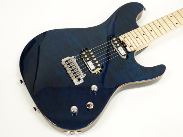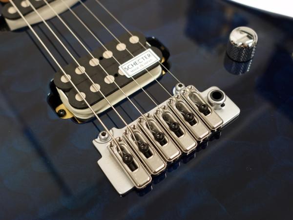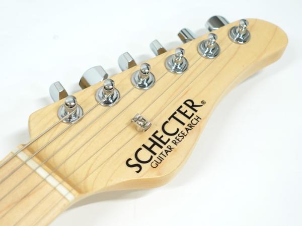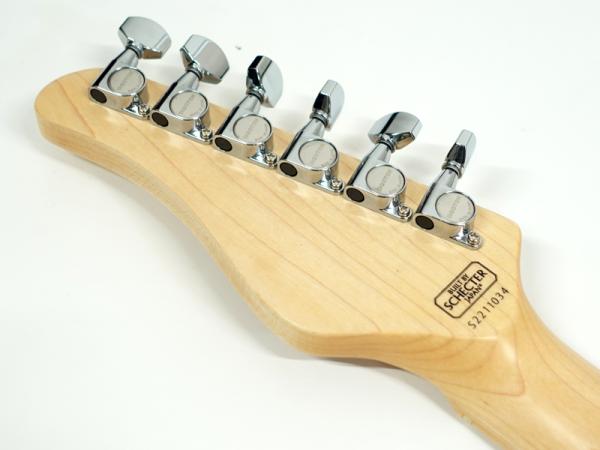 アルダーボディにキルトメイプルトップ、メイプル指板のシェクターの定番スタイル。