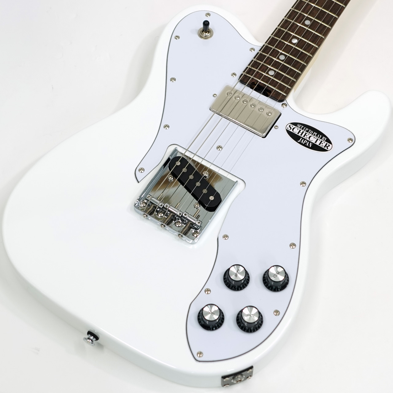 王道のテレシェイプのフロントハムバッカー搭載のカスタム仕様。バックコンターを採用したシェクターらしい弾きやすいモデルです。