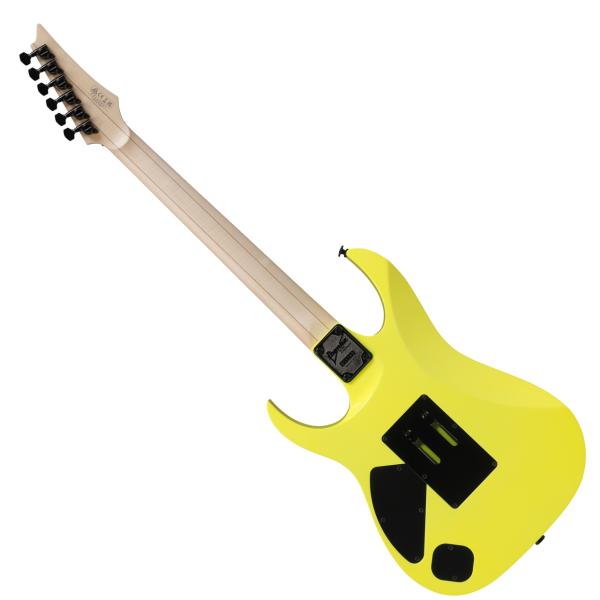 3ピースのメイプル材と2ピースのウォルナット材をラミネートした5pcs構造で剛性を高めています。極限まで軽い握り心地を好むプレイヤーに最適な、Ibanez=薄ネックのパイオニアたる所以とも言うべきシェイプです。