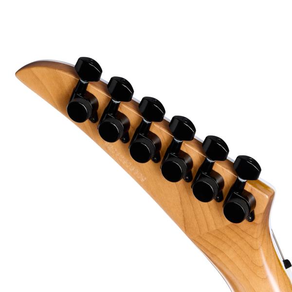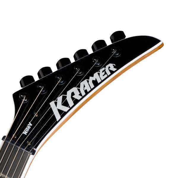 ボディースルーのノントレモロ仕様、14度ヘッド角の適度なテンション感、ザクザク刻むには持って来いの一本です。 マホガニーボディにサーマリーエイジド処理されたメイプル・ネック、ピックアップにはクレイマーUSAのEruption ピックアップを搭載しています。 エボニー指板、ロッキングチューナー、GraphTechナット、ロッキングチューナーなど上々のスペックです。 ちょっとポップなカラーからヘビーなサウンド、ギャップ萌え感も有りですネ プレミアム・ギグバック付属 画像はメーカー画像です。お届けの商品とは仕様や木目・色合いが異る場合があります。 人気の一本、店頭及び他のサイトでも販売しています。買い物かごに入れても売り切れの場合がございます。 ご了承の上、ご注文ください。 Body Material Mahogany Binding Single-ply, Fretboard and Headstock Body Finish Gloss Body, Satin Neck NECK Profile Kramer K-Speed SlimTaper C Scale Length 647.7 mm / 25.5 in Fingerboard Material Ebony Fingerboard Radius 304.8 mm / 12 in Neck Material Thermally Aged Maple Fret Count 22 Frets Jumbo Nut Material Graph Tech Nut Width 43.0 mm / 1.692 in Inlays Pearloid Thorn Joint Bolt-on with Black Ferrules Bridge Tune-O-Matic Tailpiece String-Through-Body with Black Ferrules Tuning Machines 6-inline, Locking Truss Rod Dual Action Neck Pickup Kramer USA Eruption Rhythm Bridge Pickup Kramer USA Eruption Treble Controls Master Volume, Master Tone Pickup Selector 3-way Toggle Output Jack 1/4" Black Barrel Strings Gauge .009, .011, .016, .024, .032, .042