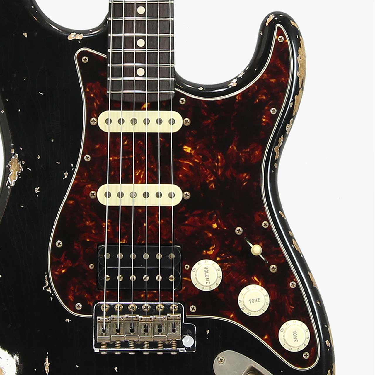 ヘビーエイジドにべっ甲ピックガード、オープンハムバッカーのルックスは1,2を争う人気のルックス。