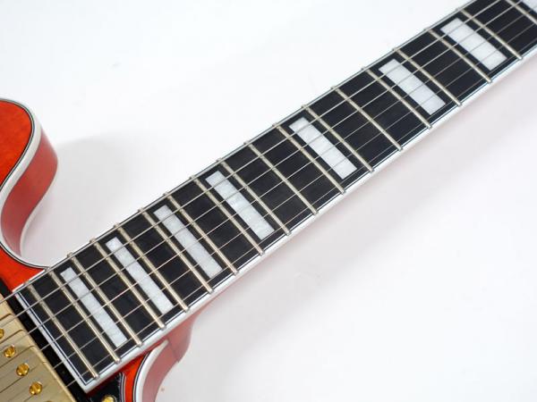 オリジナルカスタムヘッドインレイにバインディング、ブロックインレイにフレイムメイプルラミネイトボディを採用した高級感のあるEXRUBATO-CTM!!!
