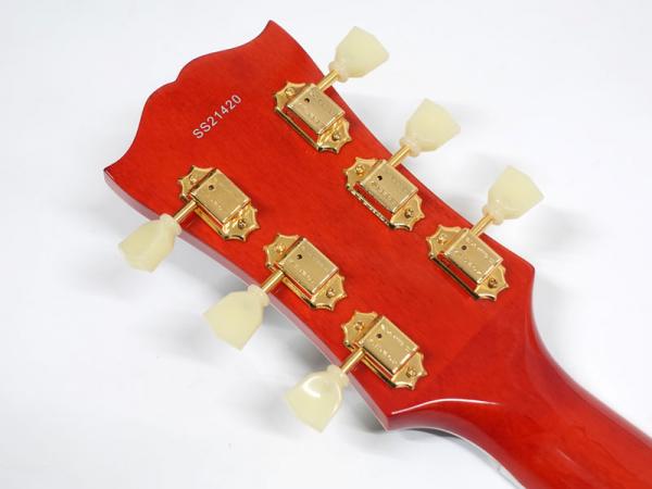 ピックアップにはオリジナルのハムバッカーを搭載し、クリーントーンではきらびやかな鈴鳴り感を表現しつつも耳に痛くない暖かさを併せ持ち、ドライブをかけると歯切れの良いエッジの効いたクランチサウンドを出力します。