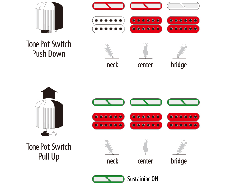 こちらはSUSTANIAC Driver(サスティニアック・ドライバー)ピックアップとSUSTAINIAC Stealth PRO preamp(サスティニアック・ステルス・プロ)プリアンプを搭載。