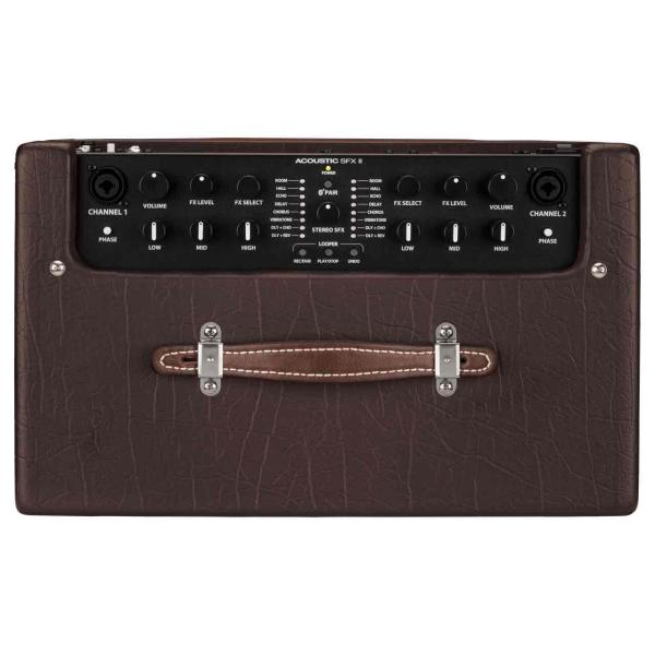 Acoustic SFX IIアンプは、アコースティックギターとボーカルに高品位のパフォーマンスを提供します。このパワフルでポータブルなシステムには、楽器とマイク両用に設計された2つのチャンネルを装備し、それぞれのチャンネルにはスタジオ品質のエフェクトが搭載されています。フェンダー独自のStereo Field Expansionテクノロジーにより、立体的なサウンドイメージングを実現します。Bluetoothワイヤレスオーディオストリーミングと60秒ルーパーを搭載しているので、ソロショーにも最適です