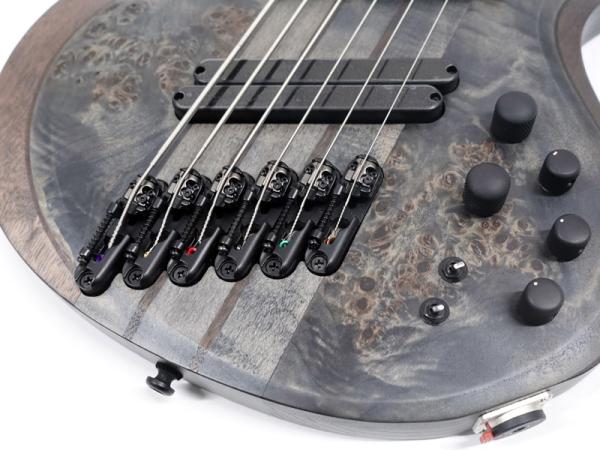 Low-B弦(6弦)のスケールを37”に設定することにより低音弦側では通常モデルBTBよりも強めのテンション感を得られ、チューン・ダウンした際の音の明瞭さと芯のあるサウンドに威力を発揮します。Ibanezベースでは最も極端に扇状となるマルチ・スケールで、特に高フレット域におけるテクニカルな運指に利点が多い仕様です。