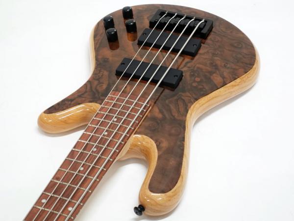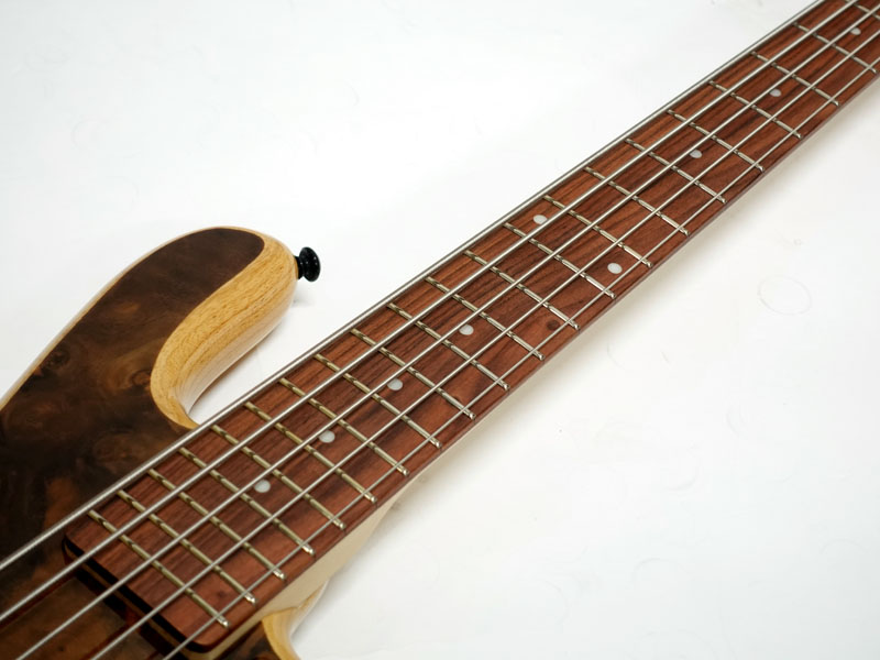 ウォルナットバールトップ、アッシュボディ、メイプル3Pネックにパーフェロー指板。