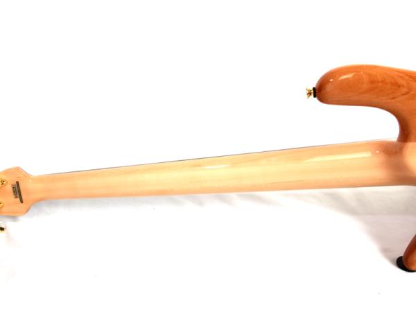 トップにはポプラバール、ボディバックはアルダーを採用。3ピースメイプルのスルーネック、ローズウッド指板、35インチスケールの24F仕様です。